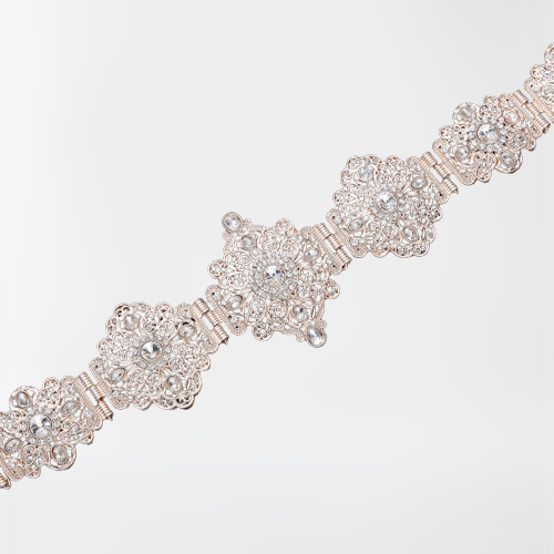 La boutique vous propose cette magnifique ceinture en métal argenté ornée de diamants pour sublimer vos tenues orientales, mais également toutes vos robes de soirée, ou de mariage.